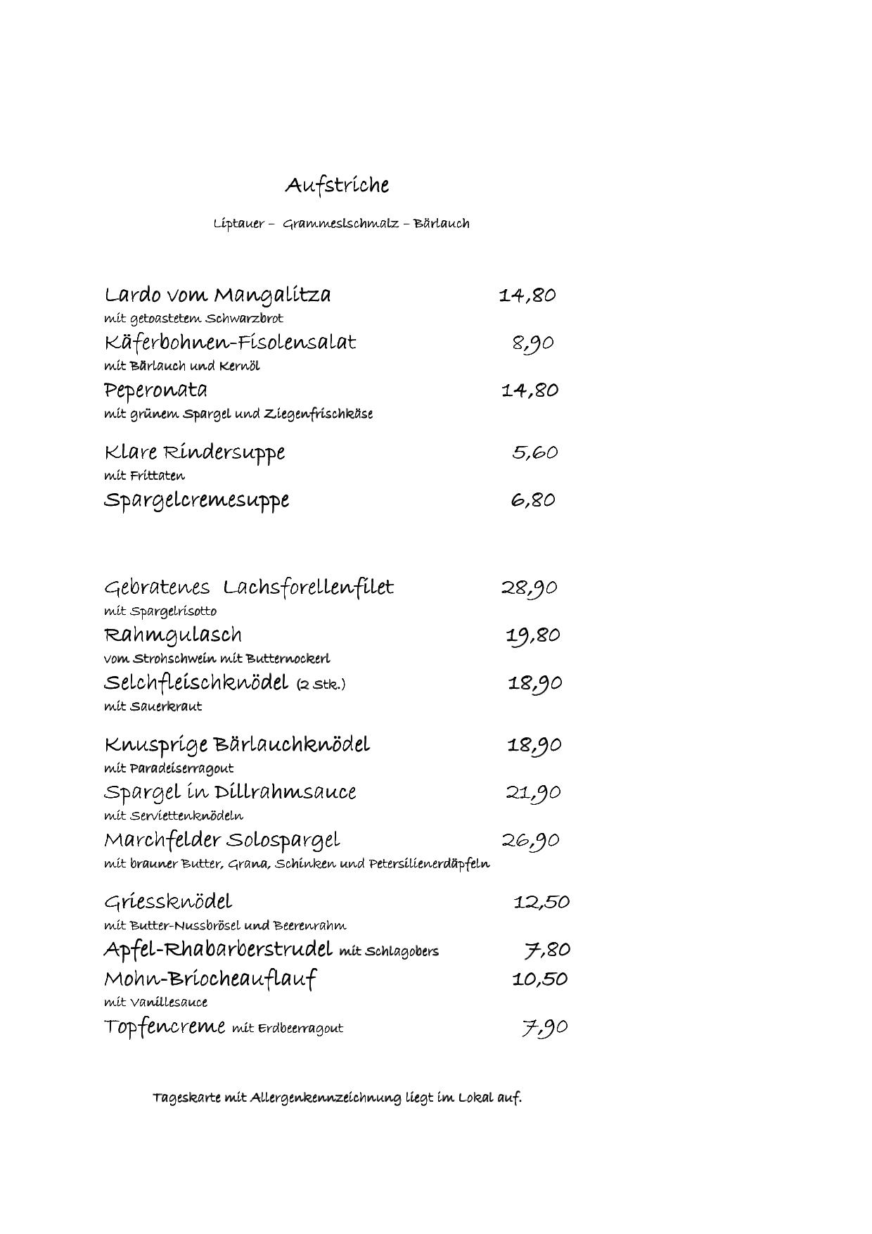 Samstag, Sonn und Feiertag ab 12 Uhr.